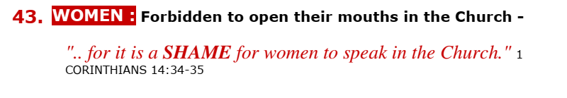 Much discussion has taken place in the church as to what Paul meant by this passage. I believe the most likely explanation is that a group of women were gossiping amongst themselves and disturbing the rest of the congregation. We know that women could talk in the church (church being a group of Christians by the way and not a building) because there were female prophets in the church (cf Acts 21:9) and not speaking in the church would certainly limit their usefulness. It is believed that women in Corinth were sat in a different part of the meeting to the men, as was the custom of that time, so it is possible that they would find themselves drawn into gossip and thus disturb everyone else.