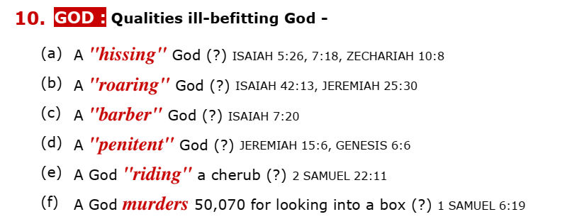 How can Deedat say for (f) that God judging a group of people for committing a great sin is not befitting of God. Judging sin is what we expect from God. The Jews knew that they were not allowed to look into the Ark of the Covenant but instead they showed total disregard for God’s Holiness. God can be merciful but he could not let that go by without judging the sinners.