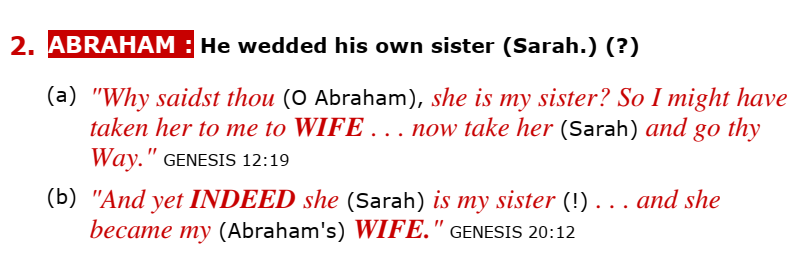 By the way, if Deedat had quoted the full passage from Genesis 20 verse 12 (Gen 20:12), we would have seen that she was actually Abraham’s half sister. It reads “Besides, she really is my sister, the daughter of my father though not of my mother; and she became my wife.” Not that this justifies the action of taking your half sister to be your wife.