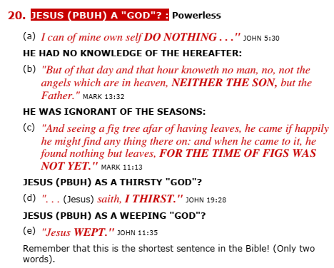 This has been covered in the above, section 19, but to repeat myself: Though Jesus is fully God, He became fully man so that he could be our atoning sacrifice. Even though he is God He had to live with all the weakness of man (but without sin) and keep the whole law. As a man He had all those human needs of eating, sleeping, etc. Why would He not express his strong emotions by crying just like all real men do? Why would He be spared of temptation while living as a man – but without falling into temptation? Jesus has now been lifted to glory and has his power and glory back.