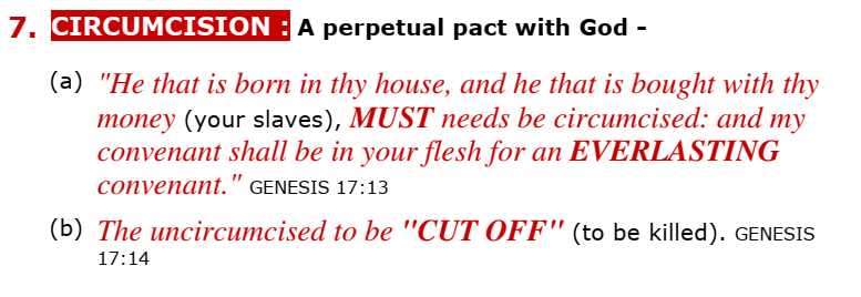 Deedat’s purpose here is to take a swipe at Christians because he knows that Christians are not required to be circumcised. He is trying to say that it is a command from God for all who follow him so thus should be applied to Christians as well as Jews. Circumcision was given to Abraham as sign that they were in the covenant with God and part of the nation that was to come later. Later on circumcision became part of the law that was given to Moses. This made circumcision a sign of obedience to the law for Jews.
